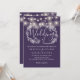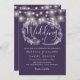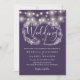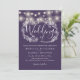 Lila String Lights Bluescript-Hochzeit Einladung