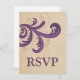 Sweet und elegant Stilvolle Wirbel Wedding Response Card mit einem hübschen Kraftpapier-Hintergrund und einem hübschen, lila, blühend Swirl-Design. Diese moderne und dennoch rustikale UAWG-Postkarte ist leicht mit Ihren Hochzeitsdetails zu gestalten. Klicken Sie auf "Anpassen", um weitere Personalisierungsoptionen zu erhalten.