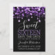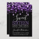 Lila & Schwarz Sweet 16 Geburtstag Funkelnd String Lights "Save the Date" Ankündigungsvorlage mit Party-Adresse und UAWG Details.