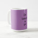 Eine Tasse mit dem Begriff "Gott glaubt an euch" auf lila Hintergrund