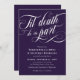 Elegantes dunkles lila Halloween oder eine tolle Hochzeitseinladung mit dem Tode Til machen uns zum Teil in einem Wirblen, weißen Kalligraphieskript geschrieben. Fügen Sie Ihre Einladungsworte in Weiß vor einem dunklen lila Hintergrund hinzu.