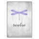 Elegante und einfache Hochzeitstischkarte mit lila Libelle vor grauem Grunge-Hintergrund. Dieses Design ist eine einzigartige Wahl für eine moderne Hochzeit. Einfach mit den entsprechenden Tischnummern anpassen. Klicken Sie auf "Anpassen", um weitere Personalisierungsoptionen zu erhalten.