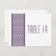 Chic und moderne Zickzack Grenz-Tischnummer Postcard mit einem Zickzack, lila und weißen Musterrahmen. Dieses stilvolle Design Set den Ton für eine elegante Hochzeit. Einfach anzupassen, fügen Sie einfach die passende Tischnummer(en) in das Textfeld ein. Klicken Sie auf "Anpassen", um weitere Personalisierungsoptionen zu erhalten.