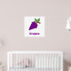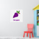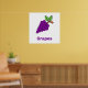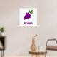 Lila Trauben auf weißem Hintergrund mit lila Worten. Helfen Sie Ihrem Kleinen, mit diesem Traubendesign Früchte zu lernen.