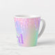 Eine trendige holografische Farbgebung in rosa, lila, mint grün. Dekoriert mit rosa und lila Tropfen. Personalisieren Sie Ihre Monogramm-Initialen und fügen Sie sie hinzu. Lila Buchstaben. Ein bisschen Alltagsglanz, um den Tag angenehm zu gestalten!