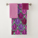 Dieses Handtuchhandtuch Set ist mit einem Rübenfarben-Waschtuch, einem leichten lila Handtuch und einem Badehandtuch mit einem kunstvollen Deko-Design von Tulpen aus Pentagons und Trapezie in verschiedenen lila Farbtönen ausgestattet.