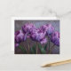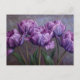 Elegante lila Tulpen mit grünen Blätter Set auf einem warmen grauen Hintergrund. Dieses wunderschöne botanische Ölgemälde wäre eine hervorragende Ergänzung zu einer Postkartensammlung, die für Scrapbooking oder andere handwerkliche Projekte verwendet wird.
