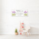Moderne, elegante, lila Tulpen, florale Aquarellsommer Wedding Willkommensbanner. Rustikales, lila Frühlingsblütenbanner. Ideal für Neugeborene. Man kann es mit Namen und Datum von Braut und Bräutigam personalisieren.