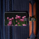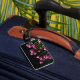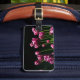 Lila Tulip auf schwarzem Hintergrund Gepäckanhänger.