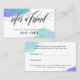 Eine schicke und auffällige Referenzkarte für einen Künstler, Makeup-Künstler, Haarstylist oder Ähnliches, mit dem Verweisen auf einen Freund, der in einem wunderschönen schwarzen Kalligraphieskript vor einem weißen Hintergrund geschrieben ist, der mit Wasserfarbe lila und türkis bespannt ist.