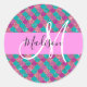Lila, lila, aqua, türkisfarbene und grüne Meerjungfrau-Glitzer-Glitzern Monogramm-Name und erste klassische Rundaufkleber. Individuelle Name und Monogramm sind in einem handgeschriebenen, eleganten Skript mit rosa Hintergrund geschrieben. Ein perfektes Geburtstag- oder Weihnachtsgeschenk!