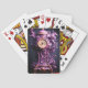 Diese Spielkarten haben eine lila Uhr auf ihnen.