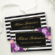 Elegante Lila Ultra-Violet Gold Aquarellfarben Gerahmte Visitenkarte mit schwarzen und weißen Streifen