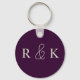 Eleganter personalisierter mit Monogramm Schlüsselanhänger mit eleganten hellbeigen Initialen auf einem dunklen lila Hintergrund. Ideal für Paare, jetzt anpassen, um Paare Initialen hinzuzufügen.