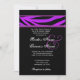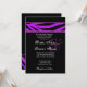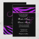 Dieses Design mit seinem lila und schwarzen Tigerprint, der hinter einem schwarzen Hintergrund herausschaut, kombiniert zeitgenössische und klassische Elemente und macht eine elegante Hochzeitseinladung. Entsprechende RSVP-Karte und weitere zebra-Bräunungselemente werden unten angezeigt.
