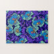 Puzzle mit William Morris Textil-Design Lila und Blue Flowers (1834-1896). Schöne Blume schmücken eine dunkle lila Kulisse. Ein wunderbares Geschenk für Viktorianische Kunstliebhaber.