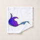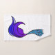 Lila und blauer Meerjungfrau-Schwanz auf dem Set der Badehandtücher, das ein Waschlappen, Handtuch und Badetuch enthält
