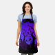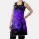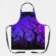 Lila und blauer Spuk Friedhof Halloween Schürze. Diese Schürze zeigt einen Spuk Friedhof in Schwarz, lila und Blau mit Grabsteinen, Spottenbäumen, Hexe, Eule und Fledermäusen.