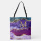 Diese Tasche ist mit einem eleganten und glamourösen lila und aquamarinen blauen Marmorboden mit Imitaten goldenen Glitzer Akzente. Das Monogramm kombiniert handgeschriebene Skripte mit modernen serifenlosen Schriftart für ein elegantes und raffiniertes Aussehen. Dies wird das ideale Geschenk, da es mit einem Namen und Initial angepasst werden kann. Die Sequinen und die bedrückte Textur schaffen die perfekte Mischung aus Chic und Grunge.