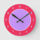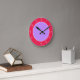 Die helle Farbblockade macht diese Wanduhr einzigartig und einzigartig schön. Die Grenze ist hell fuchsia und das Zentrum ist weicher Lavendel, lila oder lila. Erhältlich in zwei Größen von rund um die Uhr oder einer quadratischen Uhr. Copyright Scarebaby Design.