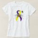 Lila und gelbes Band mit lila und gelbem Schmetterling, konzentrischen Kreisen und Schwänzen. Das lila und gelbe Band ist mit dem Bewusstsein für Autoimmunhepatitis, dem Bewusstsein für chemische Verletzungen und Lupus mit dem Bewusstsein für Endometriose assoziiert. Unterstützung für Überlebende und Sensibilisierung.
