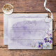 Dieses schlichte, aber elegante Hochzeitsdetails-Kartendesign besticht durch einen Bouquet lila, gelber und lavendischer Stiefmütterchen und andere Blume mit viel Grün. Der Hintergrund ist eine lila Aquarellfärbung auf einem texturierten, weißen Aquarellpapier-Hintergrund. Es ist Teil der Lila und gelben floralen modernen Hochzeitssuite, die von der einfachen Bauernhofpresse kreiert wurde.