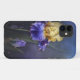 Eleganter floraler iPhone 5S Fall in einem motbelten lila und blauen Hintergrund getan. Elegante Grafiken einer lila und gelben Iris-Blume schmücken die verlassen Gehäusehälfte. Personalisieren Sie den lila Text für sich selbst oder als eine schicke Geschenkidee.