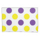 Ein lila und gelber Polka-Dots-Kissenkoffer mit einem farbenfrohen Muster aus großen runden Kreisen mit gelben und lila Punkten, um Ihrem Schlafzimmer einen Farbtupfer hinzuzufügen.