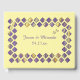 Hübsches Design von lila und gelben Schmetterlingen in einem Diamantenrahmen, wird auf kundenspezifischen Gästebüchern gedruckt. Es gibt einen Template-Platzhalter für die Namen der Braut und des Bräutigams, zusammen mit ihrem Hochzeitstag. Der Diamantenrand wird auf der Rückseite aufgedruckt, ebenso wie ein größeres Set der Schmetterlinge. Kleine Schmetterlinge gleichen Designs, sind auf der Wirbelsäule ausgerichtet. In diesem Geschäft sind passende Artikel vorhanden. Vielen Dank für Ihren Einkauf bei CherylsArt auf Zazzle.