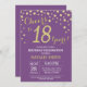 18. Geburtstag Einladung mit Lila und Gold Glitzer Diamond Hintergrund. Gold Confetti. Erwachsener Geburtstag. Männer oder Frauen zum Geburtstag.