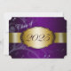 Lila und goldene Graduiertenparty mit hellen und dunklen lila Blumen und einem goldenen Band, das das Jahr des Abschlusses zeigt. Die Rückseite der Karte ist mit leichtem Gold-Schriftart lila, damit die Leute die Ankündigungen der Abschlussfeier ausfüllen können.
