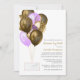 Glitzy Langstreckenbaby oder Brautparty per E-Mail mit lila und goldenem Glitzer und Konfetti-Ballons.