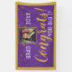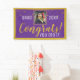 Ein festliches lila- und Goldbanner, um den neuen Absolventen zu gratulieren.