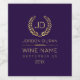 Elegantes, einfaches, mit Monogramm Weinetikett-Design, perfekt als Geburtstagsgeschenk. Goldener Lorbeerkranz mit einem anpassbaren Monogramm. Tief lila veränderbarer Hintergrund und anpassbare Textvorlage.