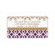 Elegante, stilvolle und wunderschöne französische Kacheln inspirierte Rücksendeadressen-Aufkleber mit einem sich wiederholenden Schmuck lila Farbe und vergoldete geometrische Muster Design und goldfarbenen französisch barocken Stil floralen blühte Rand. Unsere hochwertigen und luxuriösen Adress-Aufkleber sind ideal für ein marokkanisches, arabisches oder Aladdin-Set. Design © Chrissy H. Studios, LLC. Alle Rechte vorbehalten