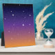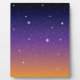 Dieses schöne Design zeigt Sterne aller Größen auf einem strahlend farbigen Nachthimmel, der mit den Farben, die vom Sonnenuntergang ausgehen, leuchtet. Der Hintergrund verblasst von sehr dunkel oben zu einem tiefen lila in der Mitte und schließlich eine goldene Orange unten. Dieses Sternenhimmel-Design ist so gut wie möglich, aber Sie können auch Ihren eigenen Text oder Bilder hinzufügen, um Ihre eigene individuelle Kreation zu machen.