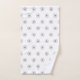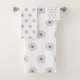 Ein Fraktal-Kunstdesign in lila und gold ist über das Set gefliest. Das Design hat einen Blumenlook. Der Hintergrund ist weiß. Die passenden Badaccessoires stehen zur Verfügung.