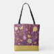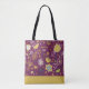Lila und Gold Whimsy-Tasche mit verschiedenen Blume, einigen Vögeln, Herz und einem Bereich, den Sie leicht personalisieren können mit Ihrem Namen!
