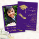 Erstellen Sie eine einzigartige Foto-Abschluss-Einladung für die Klasse der 2025 Graduierte in lila und goldenen Farben mit Kappe und Diplomabbildungen dekoriert. Vorlagen machen es einfach, die Einladungen mit Ihren Daten zu personalisieren und ein Foto auf die Rückseite hochzuladen.