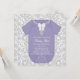 Adorable Lavendel lila Säugling Körper mit Diamanthalskette und weißen Bogen lila und graue Mädchen Dusche Einladungen. Diese niedliche lila und graue Duschdusche für Mädchen aus Damast lässt sich leicht an Ihre Veranstaltung anpassen, indem Sie Ihre Veranstaltungsdetails, den Stil des Schriftartes, die Größe und Farbe des Schriftartes und den Wortlaut hinzufügen.
