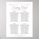 Machen Sie Ihren Hochzeitsempfang mit diesem 4-Tisch-Sitzplan schön. Das schlichte und dennoch elegante Design mit lila oder lavendelfarbenem und grauem Text auf weißem Hintergrund mit silberfarbenem Imitat und blühendem Rand. Dieses Diagramm zeigt die Tabellenzuordnungen, damit Ihre Gäste den richtigen Tisch leicht finden können.