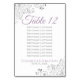 Machen Sie Ihren Hochzeitsempfang mit diesen Tischnummern schön. Sie zeichnen sich durch ein schlichtes und dennoch elegantes Design aus: Lavender Lila & Gray auf weißem Hintergrund mit einem silbernen Imitat-Folie mit Blumenrahmen. Diese Karten beinhalten Sitzbelegungen, damit Ihre Gäste den richtigen Tisch leicht finden können.