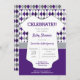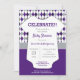 Überwobene elegante Raute in Schulfarben lila und grauen Set, die Kulisse für dieses niedliche Babyduschdesign. Ein weißer Baby-Bodysuit hat den ganzen Text, der für die große Veranstaltung geschrieben wurde, die eine Dusche für Paare oder einfach nur für Mama sein kann. Das Design besteht aus Mond und Grau, verbrannten Orange und Grau, Rot und Schwarz, Grün und Schwarz, Orange und Marine, Grün und Gelb, lila und grau. Matching-Produkte verfügbar.