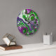 Lila und grüne Marmorflüssigkeiten Kunst Große Wanduhr
