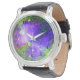 lila und grünes Galaxy Nebula Weltraumbild. Armbanduhr