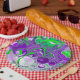 Lila und kalkgrüne Marmorlasche Kunst Pappteller