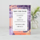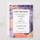 Modernes abstraktes Design in lila und koral. Diese schlichte und moderne abstrakte Save the Date-Karte ist der perfekte Weg, um die Feier zu beginnen. Alle Details im weißen Rahmen können an Ihre Hochzeitsdetails angepasst werden. Der Stil und die Farbe des Schriftartes können auf Ihren persönlichen Stil abgestimmt werden. Die Kartenrückseite ist ein solides lila, das mit dem lila im abstrakten Design übereinstimmt.