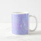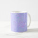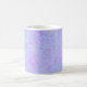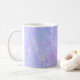 Ein wunderschönes Design aus metallisch anmutenden rosa, lila und türkisfarbenen Flocken auf einem lila Hintergrund.