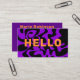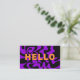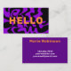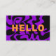 Dieses auffällige Design hat einen kühlen Schriftart mit dem Wort "hallo", auf einem Hintergrund mit einem asymmetrischen abstrakten, wirbelnden Muster in schwarz. Mit hellen Farben, lila für den Hintergrund, und orange in der Typografie an der Vorderseite.