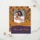 Diese Auberginen-lila- und Mandarine-Damast-Save the Date-Karte mit einem DRUCKEN auf Band und Juwel-Brosche hat einen Fotovorlagenbereich, in dem Sie Ihr eigenes Foto hochladen können. Wenn Sie andere Artikel benötigen oder möchten, dass dies ohne den Foto-Bereich, senden Sie Ihre Anfrage an niteowlstudio@gmail.com.